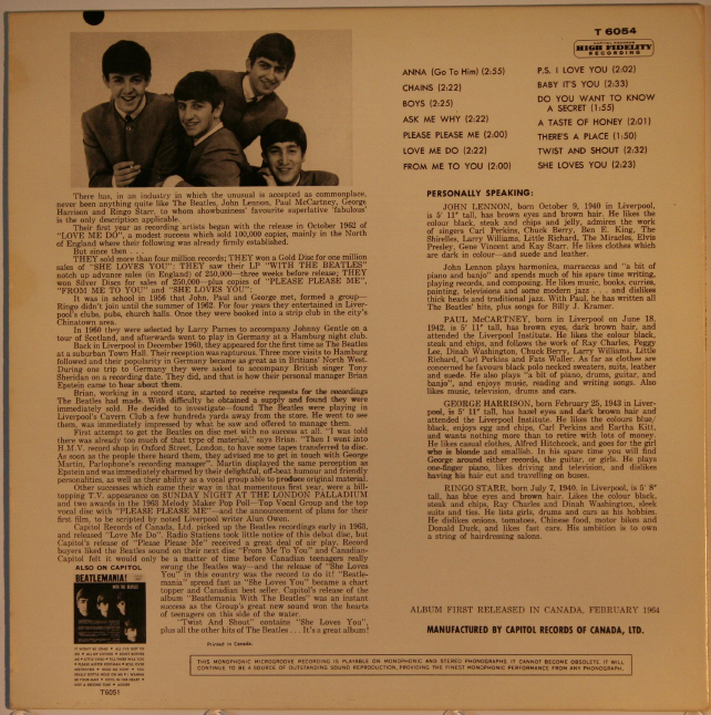 Beatlemania: Capitol Records of Canada 6000 Series T 6051
