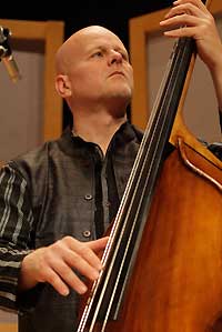on the bass. Whether bowing or plucking, stand-up bass or guitar, he intuitively